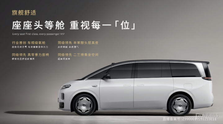 此外,配置方面,目前已知新车将会搭载端侧AI大模型智能座舱,内置高通骁龙双8797芯片,算力达1280TOPS,同时搭载VLA辅助驾驶系统,并配备半苯胺头层真皮、零重力桌椅、车规级气舱等豪华配置。
